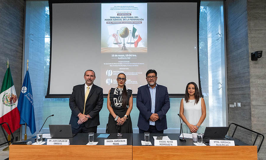 En distintas fechas, pero periódicamente, los mexicanos acuden a las urnas a elegir entre quienes se postulan para ocupar presidencias municipales, gubernaturas y curules. Además, cada seis años tachan boletas para elegir a quien ocupará la Presidencia de la República. Así había venido siendo, hasta este año: la ciudadanía ha sido convocada para elegir el próximo 1 de junio, por primera vez, a las personas que ocuparán distintos cargos del Poder Judicial. Como todo territorio desconocido, la implementación de esta medida ha generado muchas dudas e incertidumbre, por lo que la licenciatura y la maestría en Derecho del ITESO organizaron la charla “Los retos del Tribunal Electoral del Poder Judicial de la Federación (TEPJF) en el proceso de la elección judicial”.